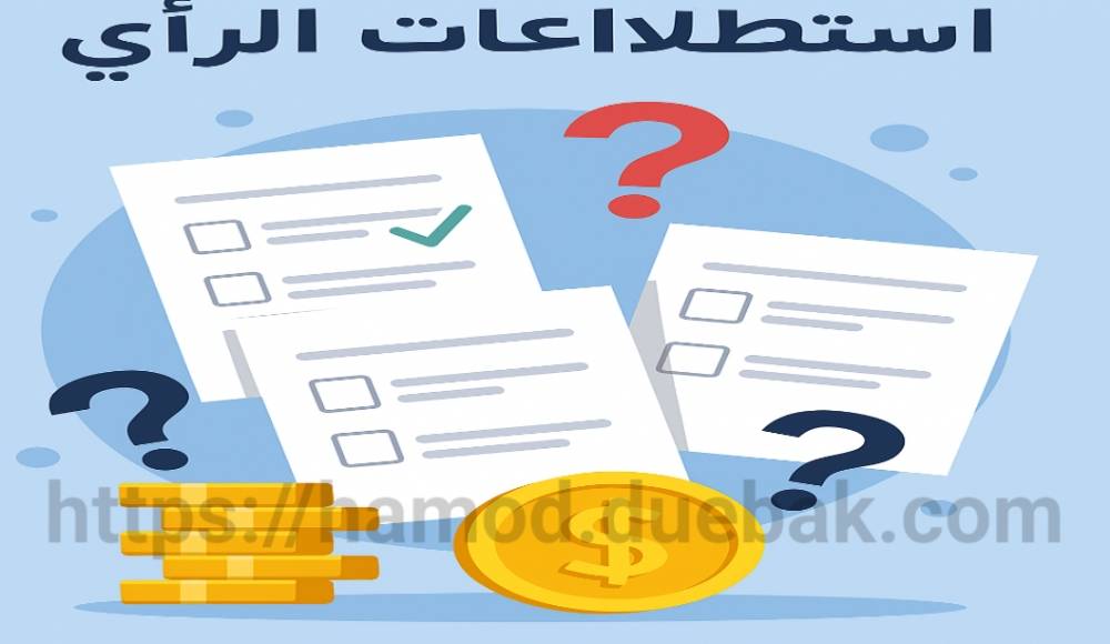 موقع بيعطيك فرصة تربح مصاري وانت قاعد بالبيت كل اللي عليك تسجل بالموقع وتبلش تجاوب على استطلاعات رأي بسيطة ما بتاخد وقت وكل استطلاع عليه مبلغ معين بيتجمع بحسابك ولما توصل الحد الأدنى بتقدر تسحب أرباحك بكل سهولة عبر وسائل الدفع المتاحة